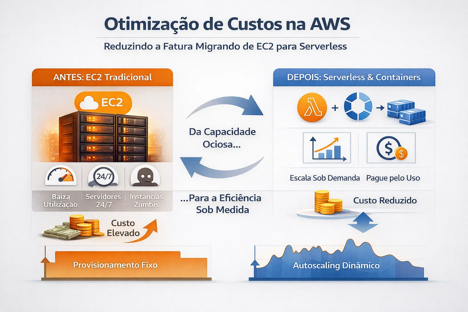 Descubra como reduzir custos na AWS migrando de EC2 para Serverless e Containers. Estratégias de FinOps para CFOs e Founders economizarem na nuvem.